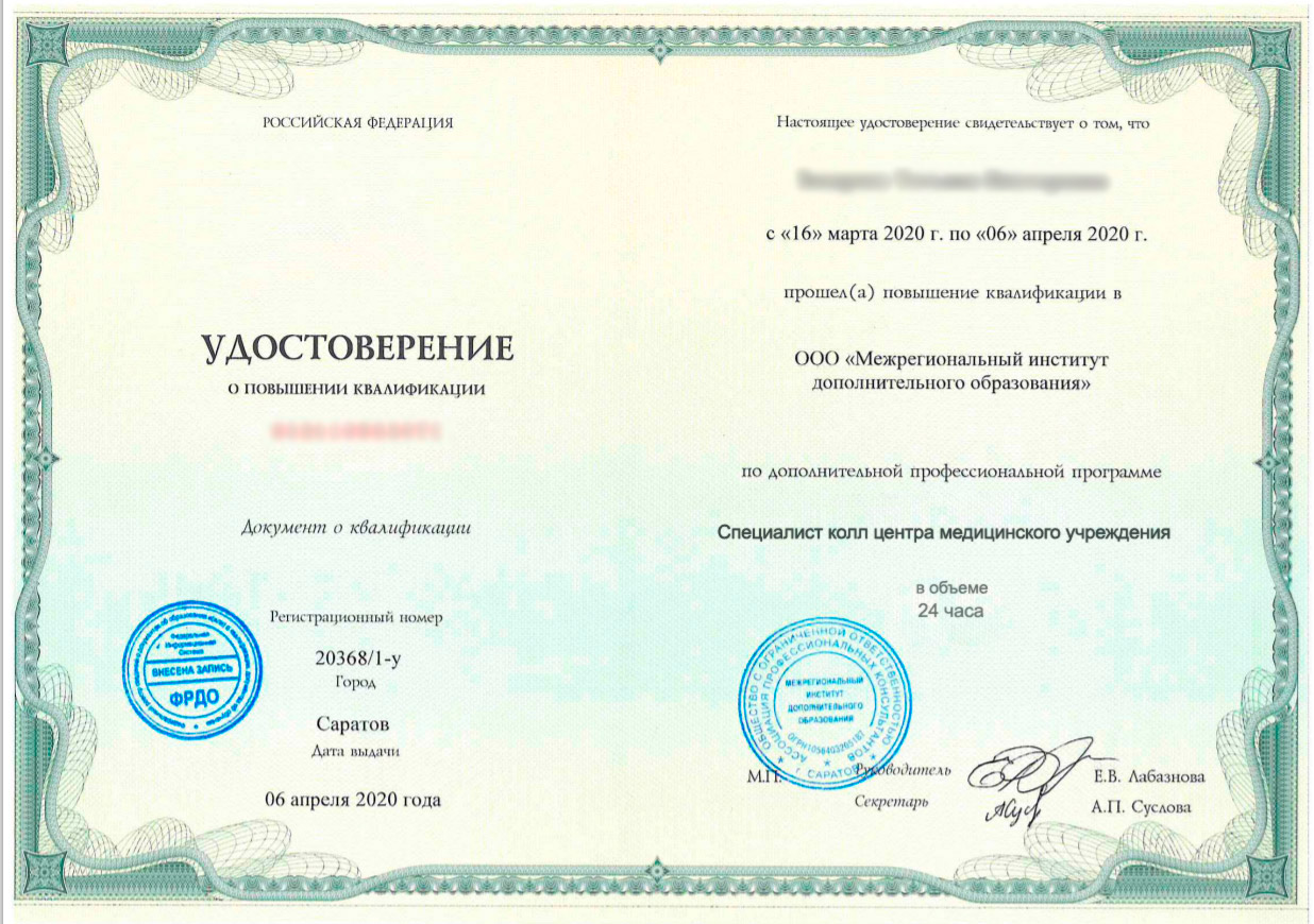 Специалист колл центра медицинского учреждения в Белгороде - повышение квалификации